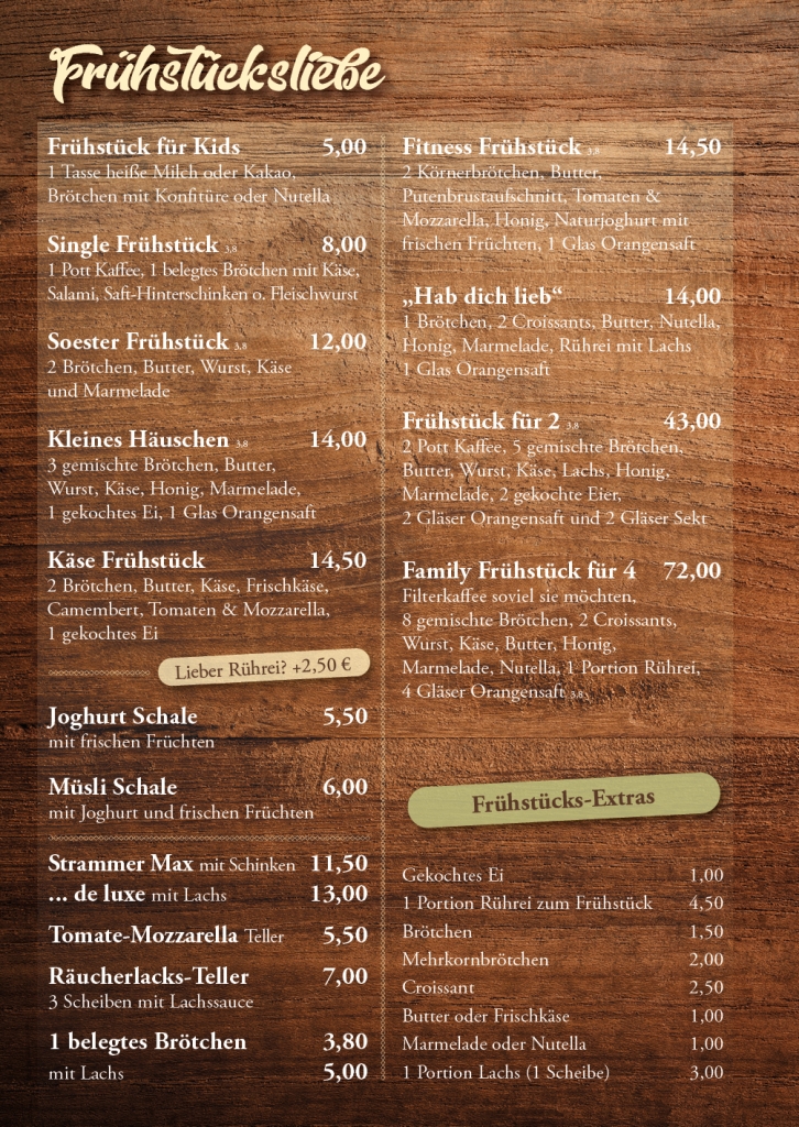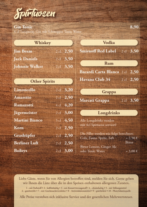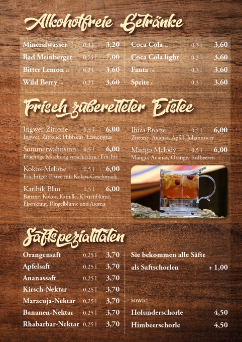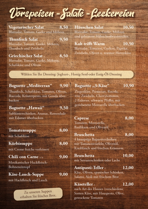Sie möchten einmal in unsere Speisekarte schauen? Kein Problem. Einfach die PDF öffnen oder durch die Galerie klicken. (Speisekarte als PDF)